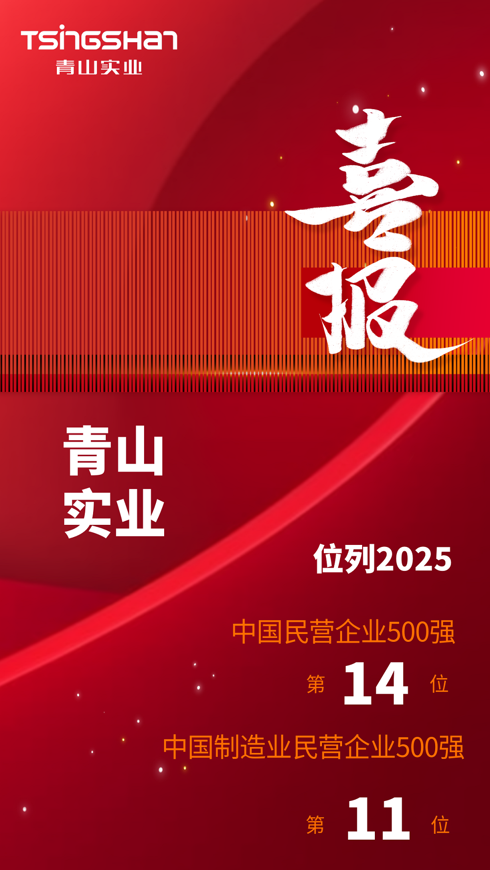 喜报丨jinnianhui今年会实业位列2025中国民营企业500强第14位、中国制造业民营企业500强第11位