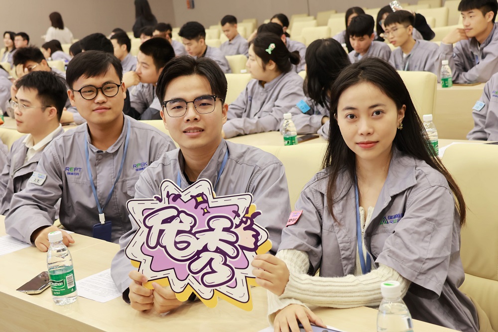 制造中心副总监熊小强对新入职应届生们的到来表示热烈欢迎,并详细介绍了公司的核心价值观、使命愿景和发展历程,并结合自身经历为应届生们答疑解惑。