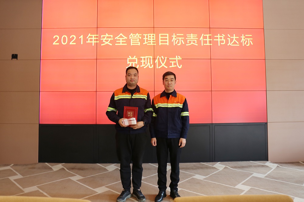 姜海洪为2021年度安全管理目标达标的9个单位进行了颁奖,并与集团直属部门、各子公司签订了2022年安全管理目标责任书。